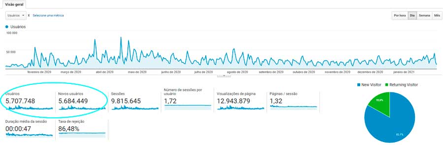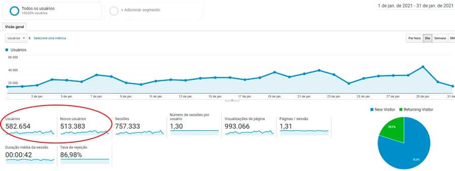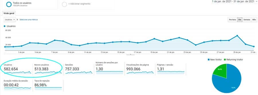 Tráfego mensal de Janeiro de 2021: + 582 Mil acessos no website